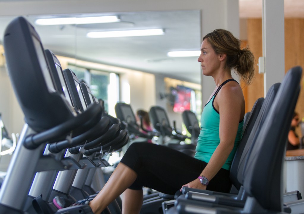 Featured photo: Jenny Jocks Stelzer watches television as she exercises on state-of-the-art cardio equipment at the West Cook YMCA in Oak Park on September 3, 2015.
